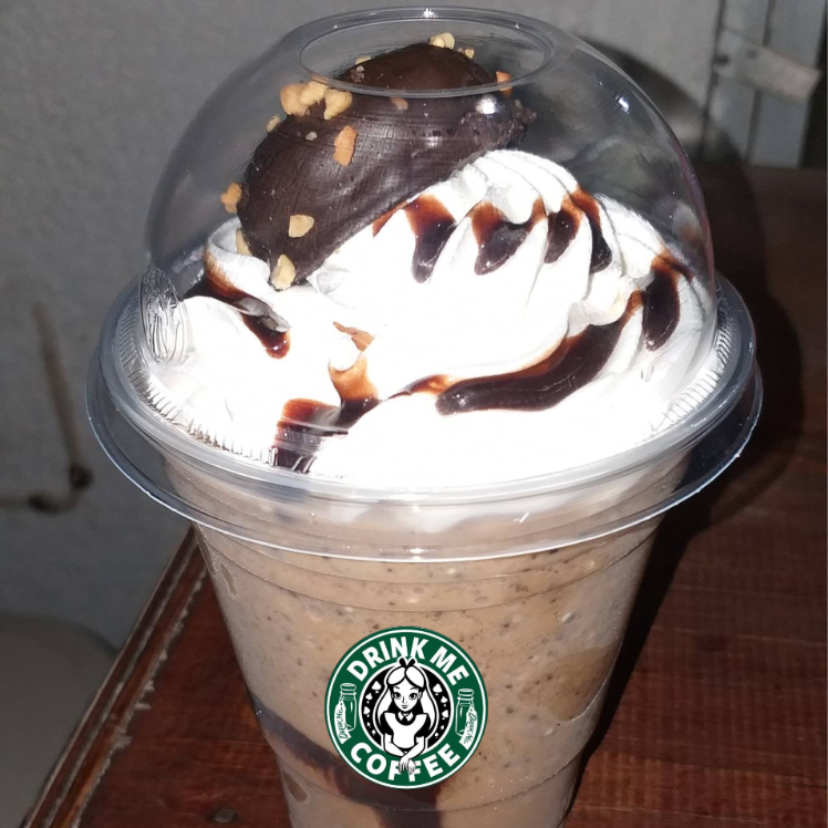 Frappe de cacahuate y cacao, con bola de helado