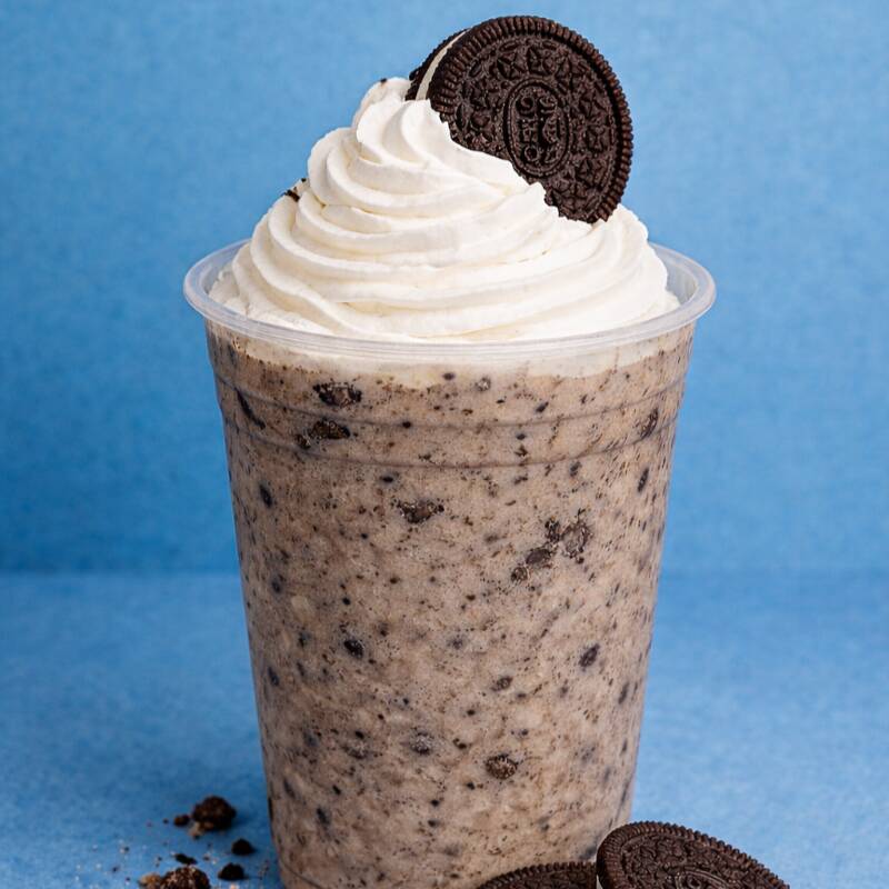 Frappe sabor OREO hecho con leche deslactosada. 16oz