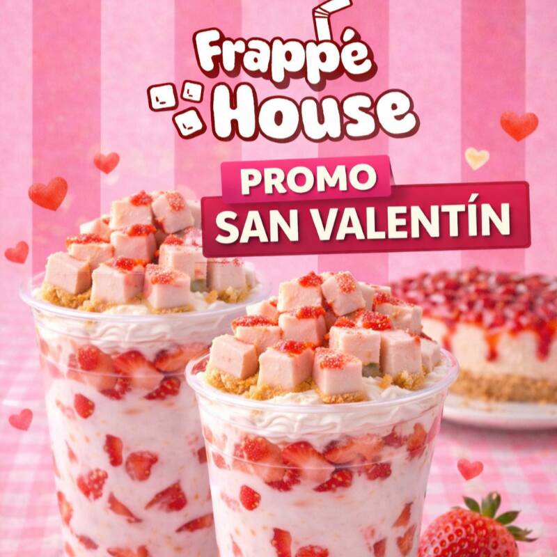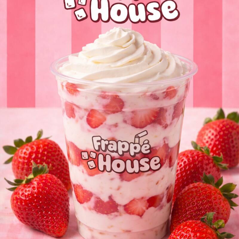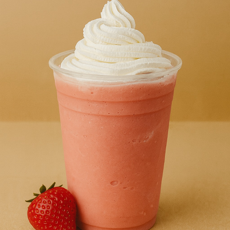 Frappe sabor fresa hecho con leche deslactosada. 16oz