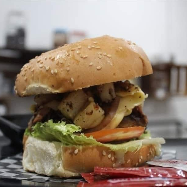 150 gramos de carne de res, cebolla, lechuga, tomate,queso gratinado, piña.