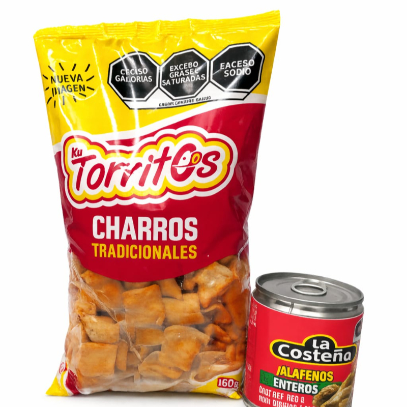 Charritos marca Torritos de 300g con lata de jalapeños enteros