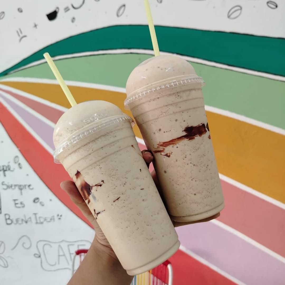 Bebida a base de plátano, café, avena, cocoa, crema de cacahuate.