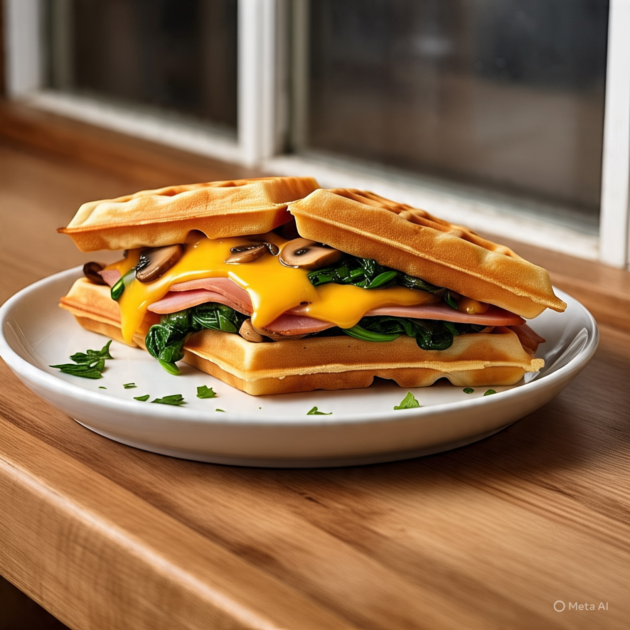 Waffle relleno tipo sándwich con 2 ingrediente a elegir.