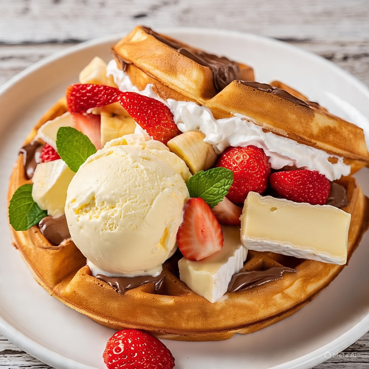 Queso de bola, Lechera, Nutella, helado y fresas.