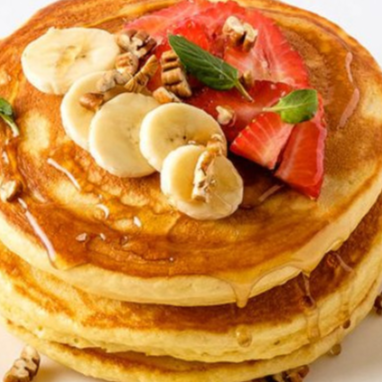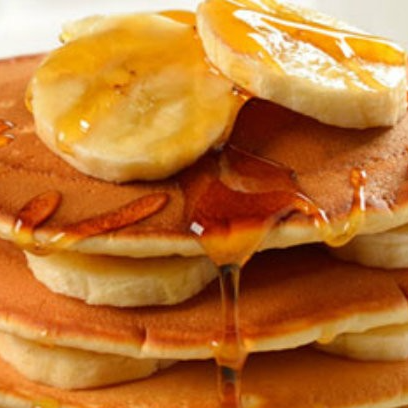 Orden con 3 deliciosas piezas de Hot Cakes con platano y 1 ingrediente a elegir.
