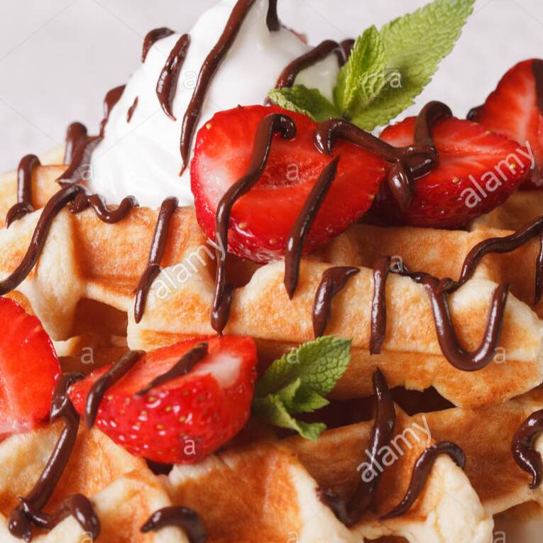 Delicioso waffle con fresa natural, crema batida y nutella.