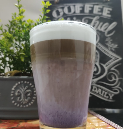 El taro aporta fibra es un tubérculo, lleva cafe recien molido, sabor vainilla o galletas marias .