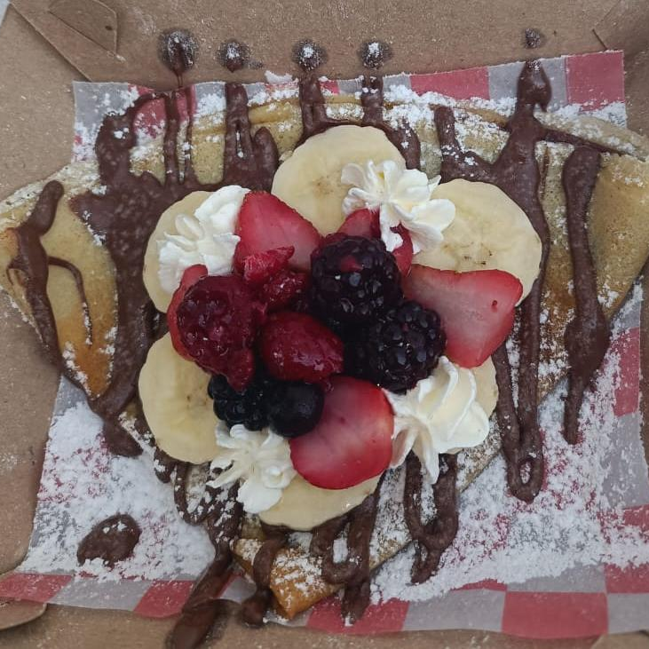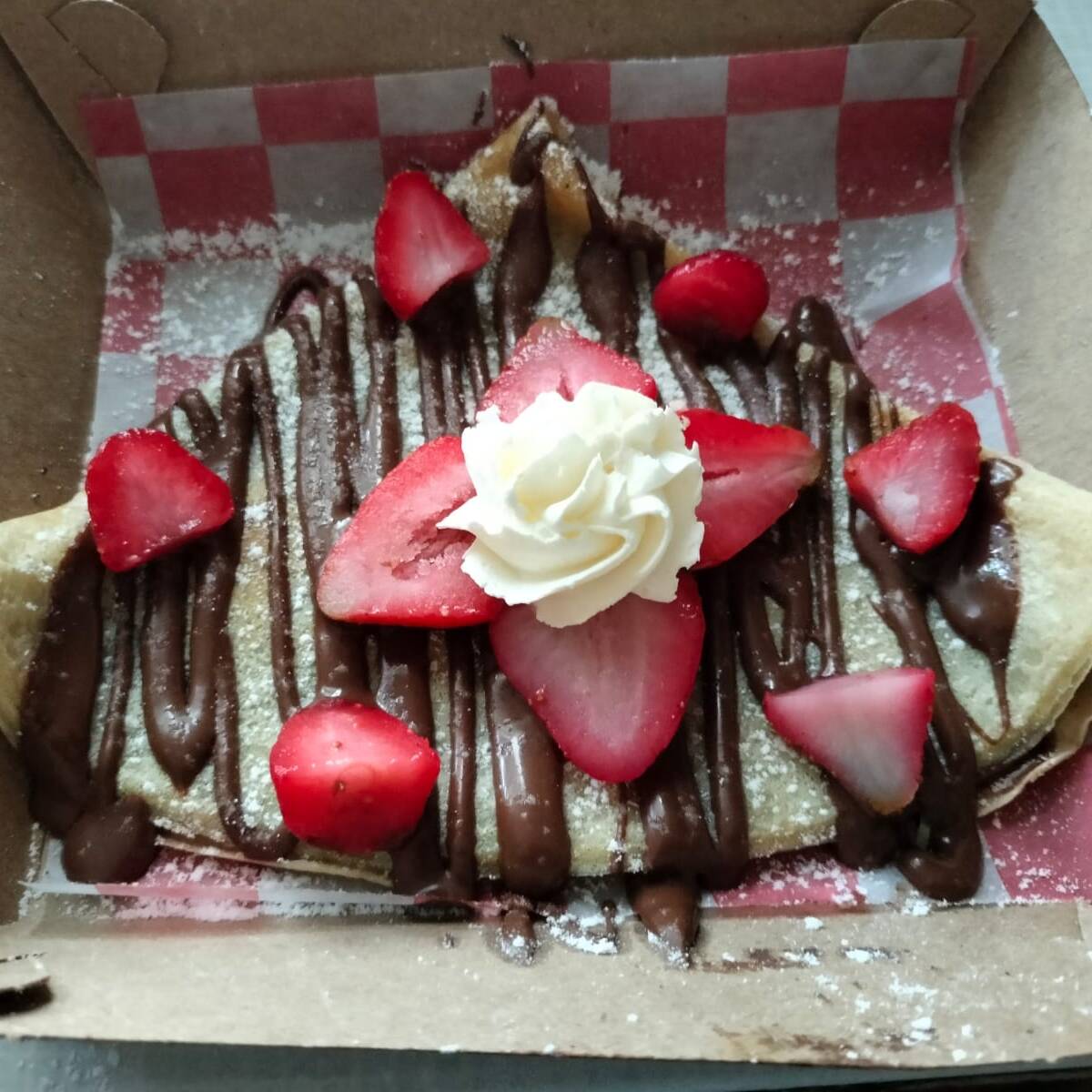 Fresas congeladas acompañada de una crema especial, decorada con chantilly y nutella, adicionalmente lleva un topping a elegir