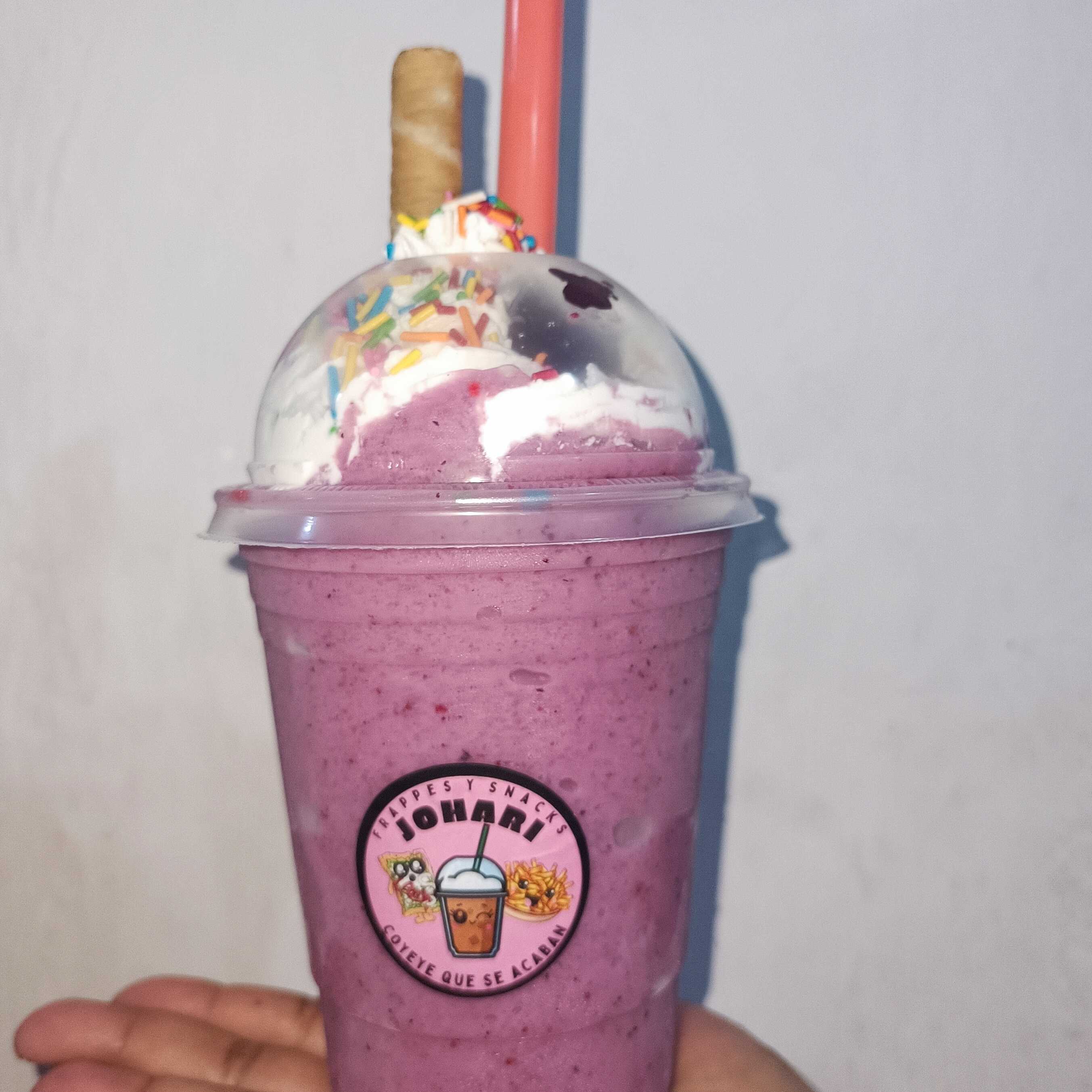 Fresas congeladas acompañadas de una crema especial decorado con chantilly