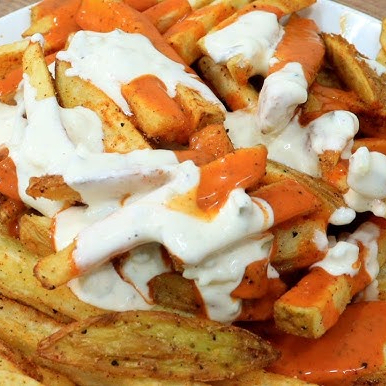 Papas a la francesa, bañadas con nuestra salsa búfalo.
