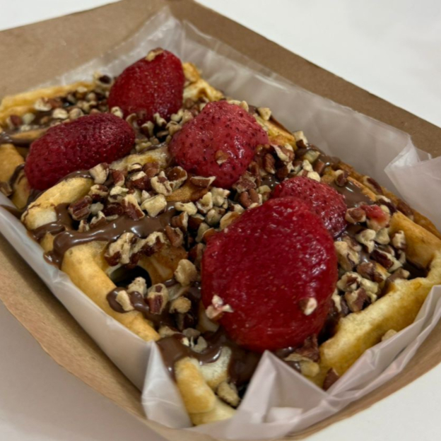 Waffle dulce con 1 topping y 1 untable a elegir.