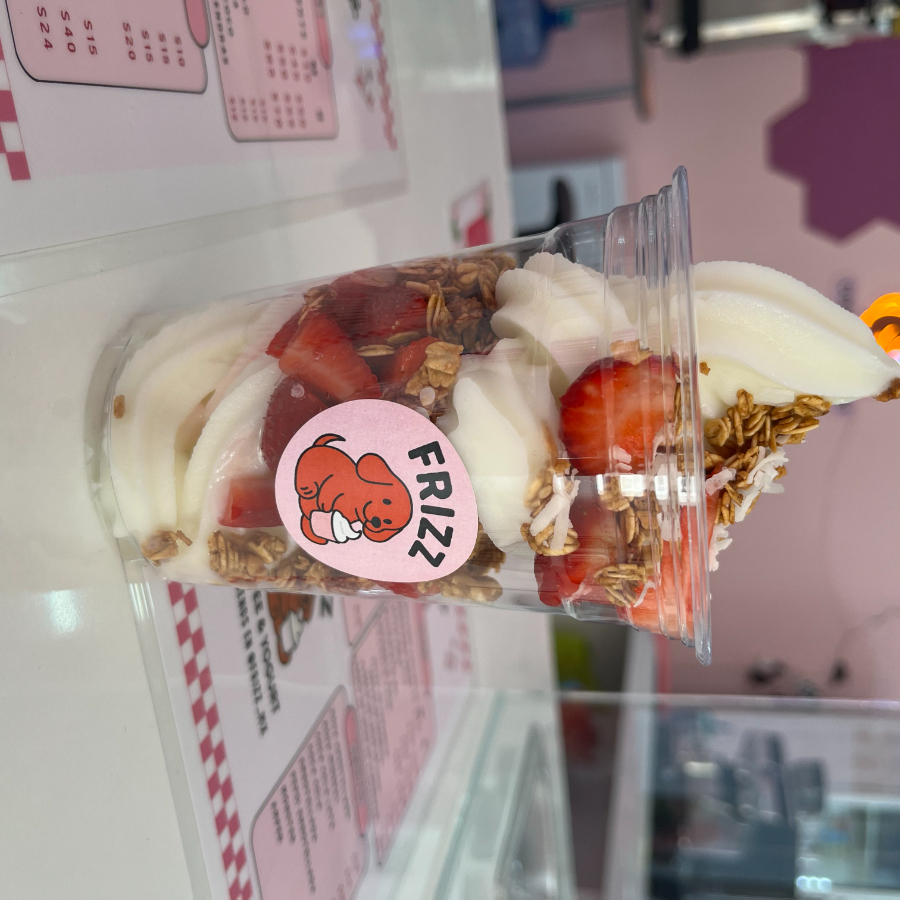 Helado de yogurt con el sabor que tengamos en existencia, nosotros nos comunicamos enseguida para que elija su sabor preferido entre los 3 que tenemos diario con dos toppings a elegir y un jarabe