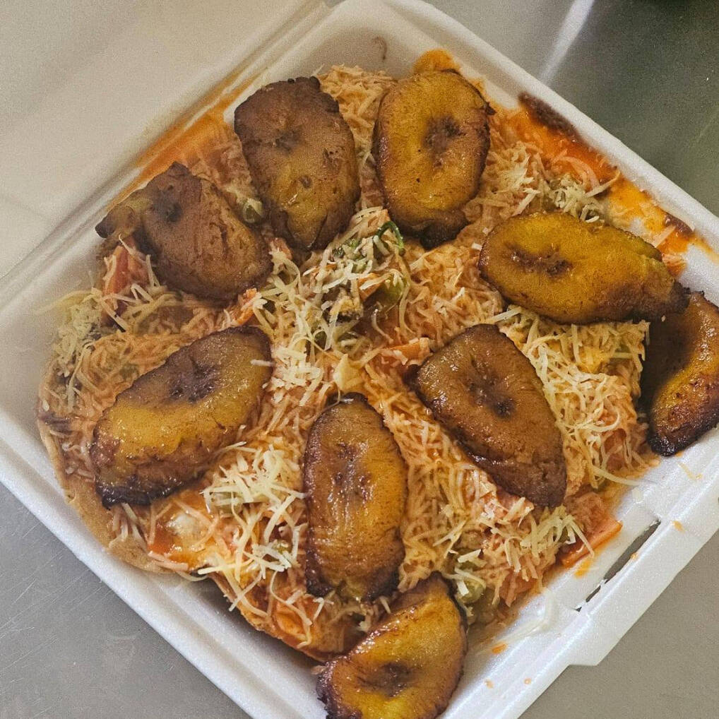 Deliciosa Pasta fetuchinni al dente con base alfredo y toque de Salsa bufalo, servido con tiras de pollo empanizado bañados en Bufalo, panecillo y queso de Bola.