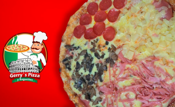 3 ingredientes a escoger en cada pizza: Jamón,peperoni, salchicha de pavo, salami, cebolla, piña, champiñón, aceitunas negras, salchicha para asar, pimiento, frijol, chorizo y tocino.