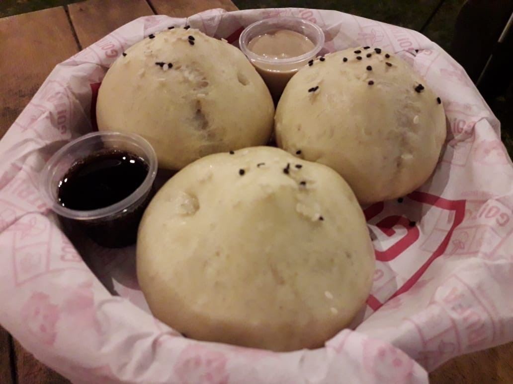 Pan al vapor relleno de cerdo, ajo, jengibre, rabo de cebolla, soya y aceite de ajonjolí, aromatizado con especias.