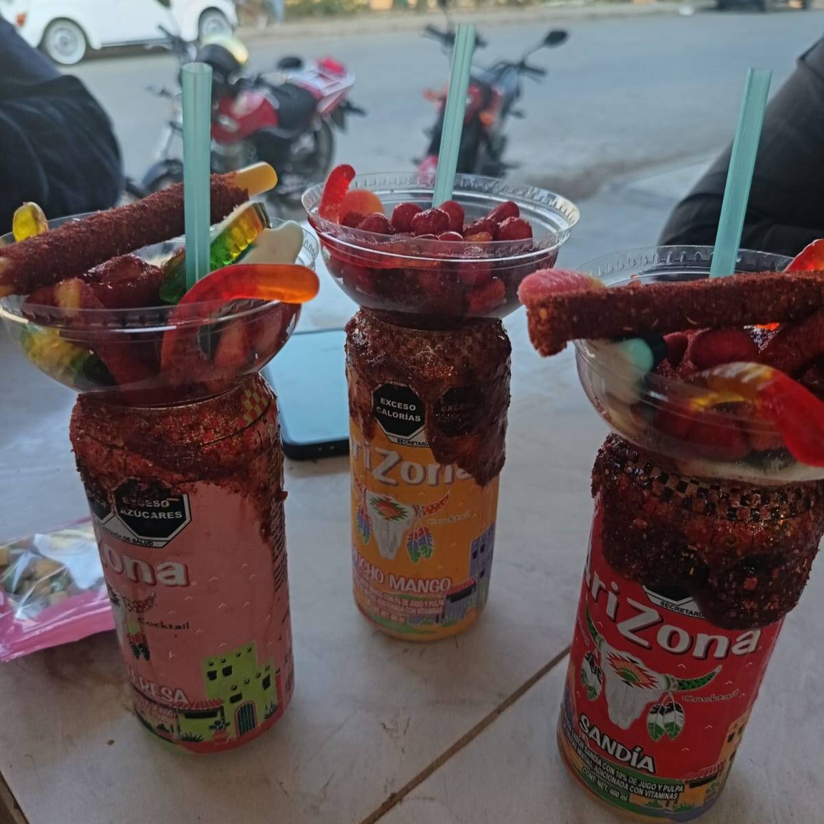 arizona con gomitas ,cacahuate ,chamoy
