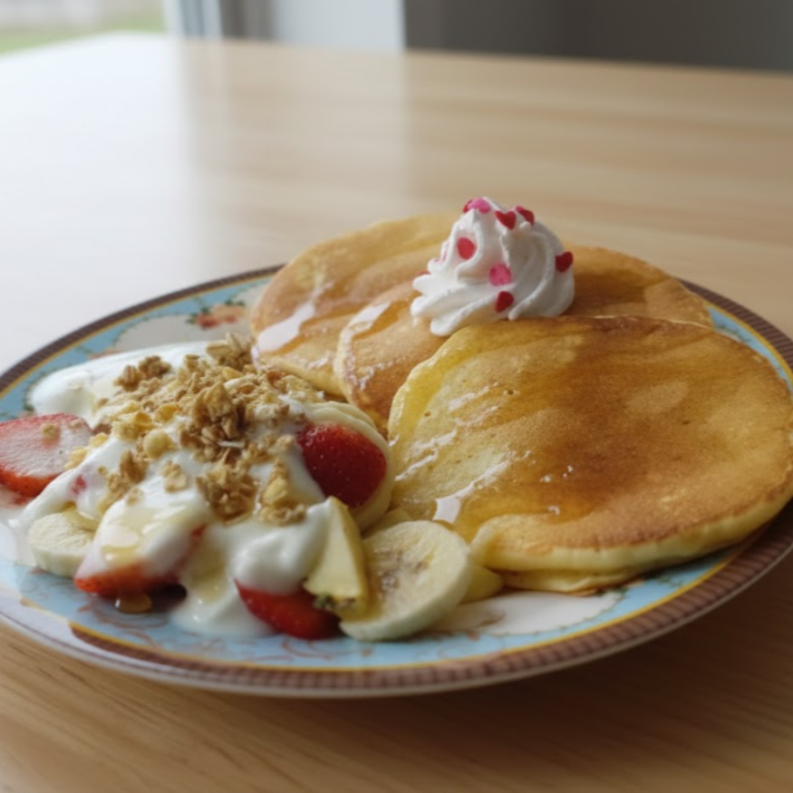 Orden de 2 huevos estrellados o revueltos con: salchicha, jamón, champiñon, elote o tomate y cebolla acompañado de papas fritas, frijol refrito, y tostadas