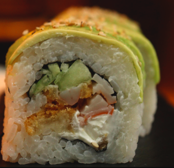 PD: pepino, aguacate y camarón. PF: masago y ajonjolí.