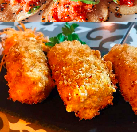 Kushiage de Manchego, Queso Crema y Camarón 3 pzas