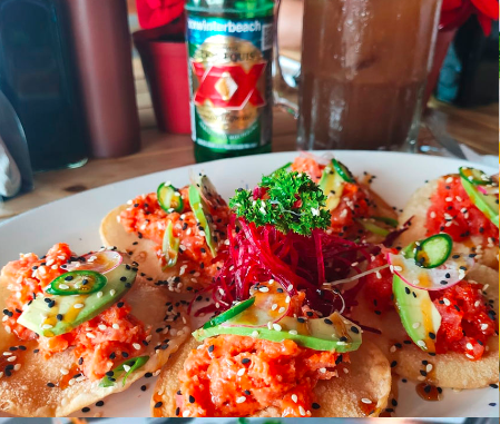 PD: camarón, aguacate y queso crema. PF: tampico.