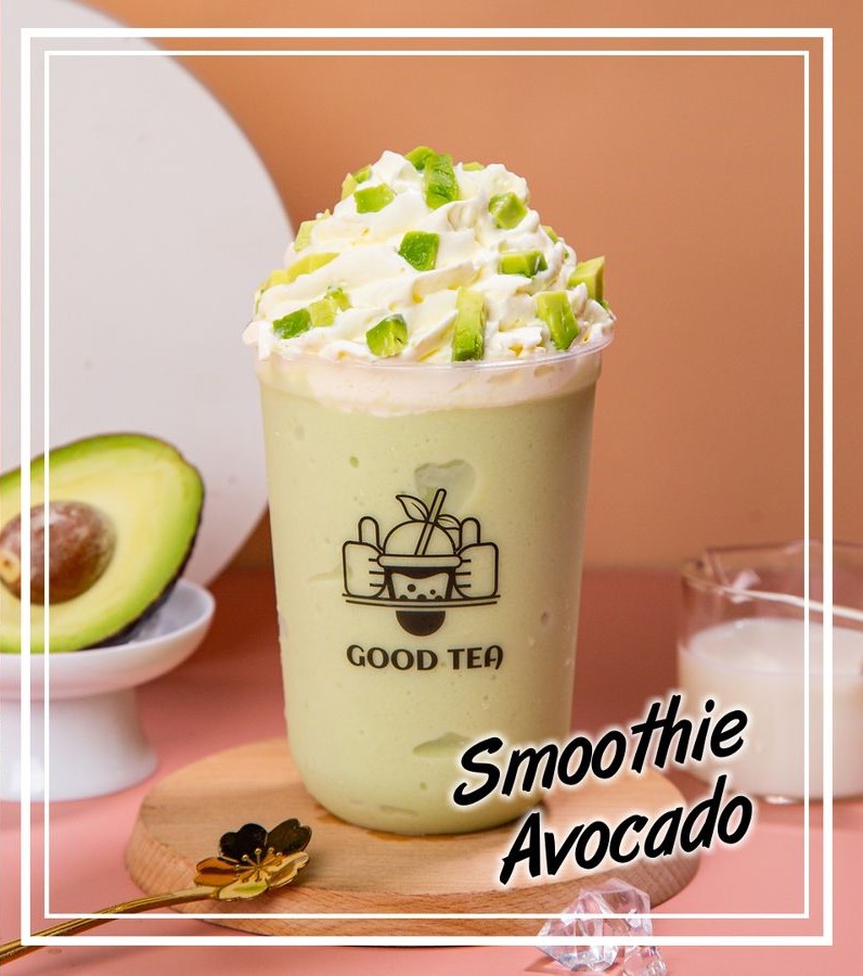 Frappé de aguacate a base de leche deslactosada decorado con crema batida.