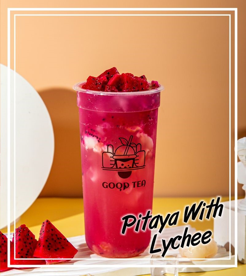 Té jazmín con mermelada de Litchi y pitaya natural.