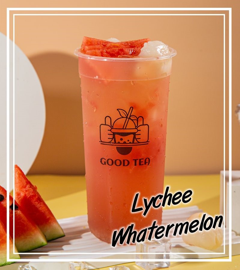 Té jazmín con mermelada de lichi y sandía natural.