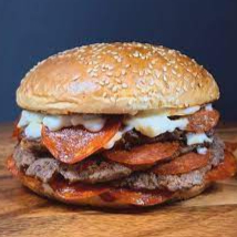 Deliciosa carne de sirloin estilo smash, finamente sellada para lograr un sabor intenso y textura crujiente, acompañada de rebanadas de peperoni, queso fundido, pepinillos frescos, cebolla y un pan suave con el toque cremoso de la mayonesa.