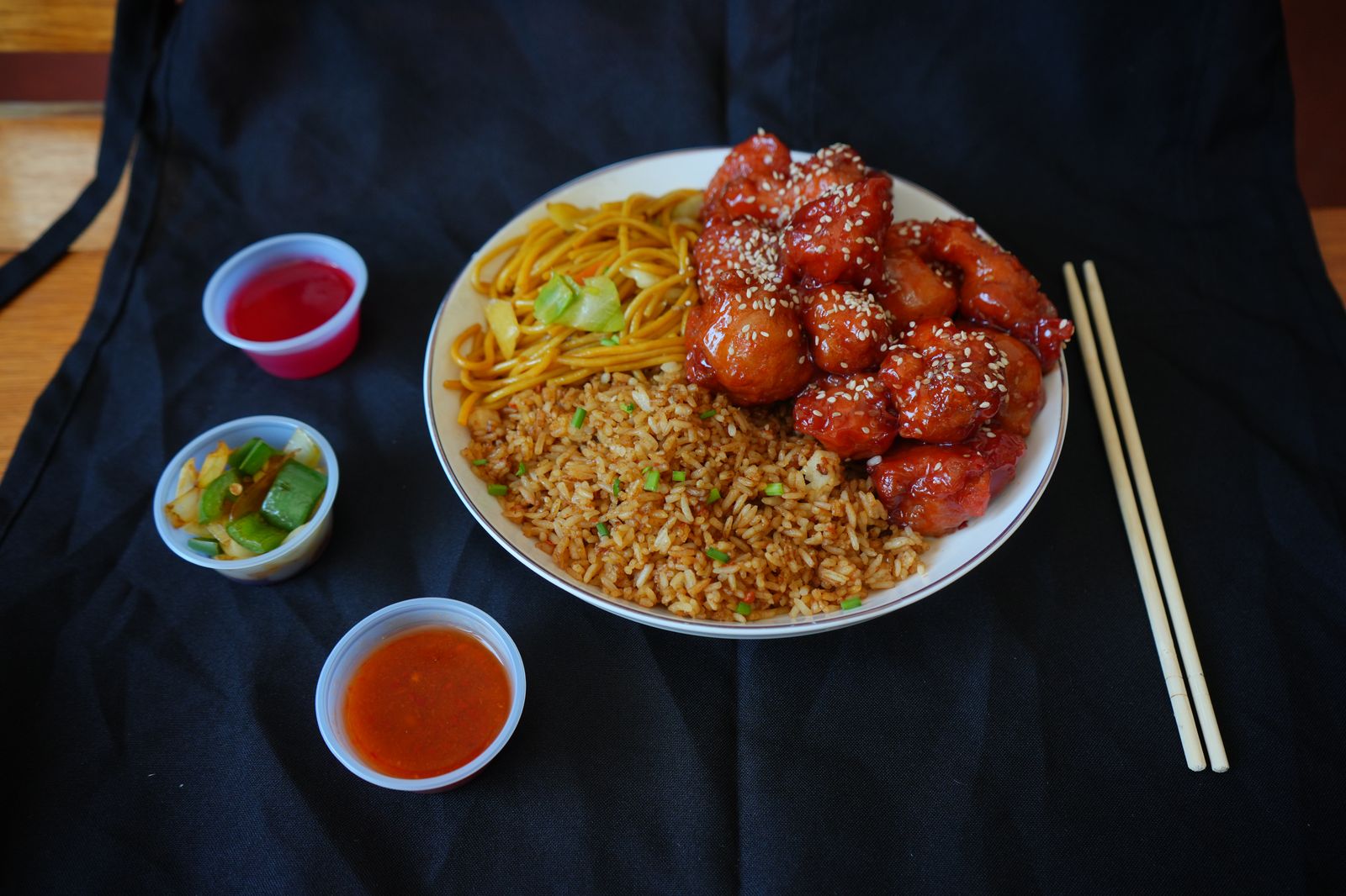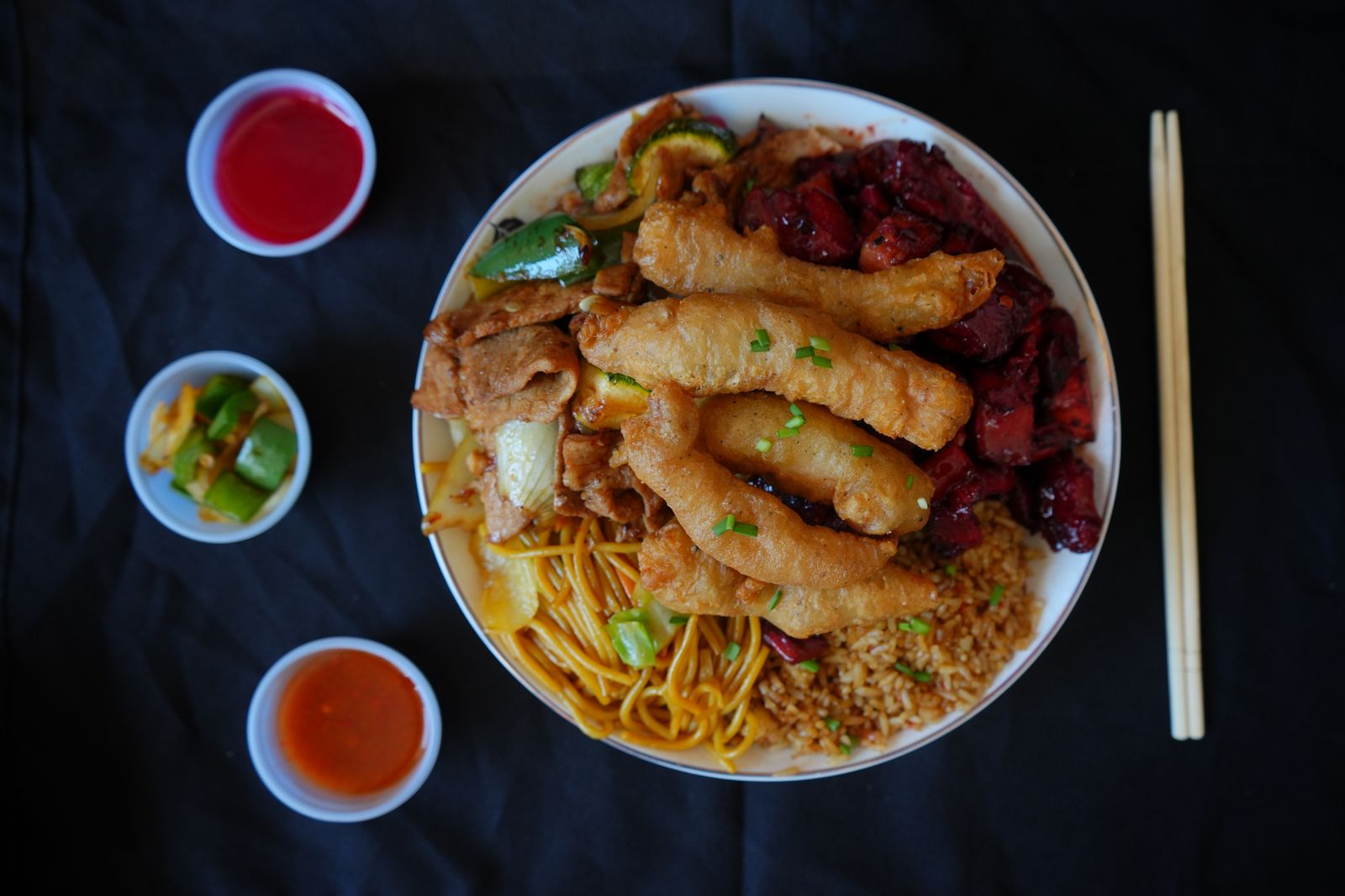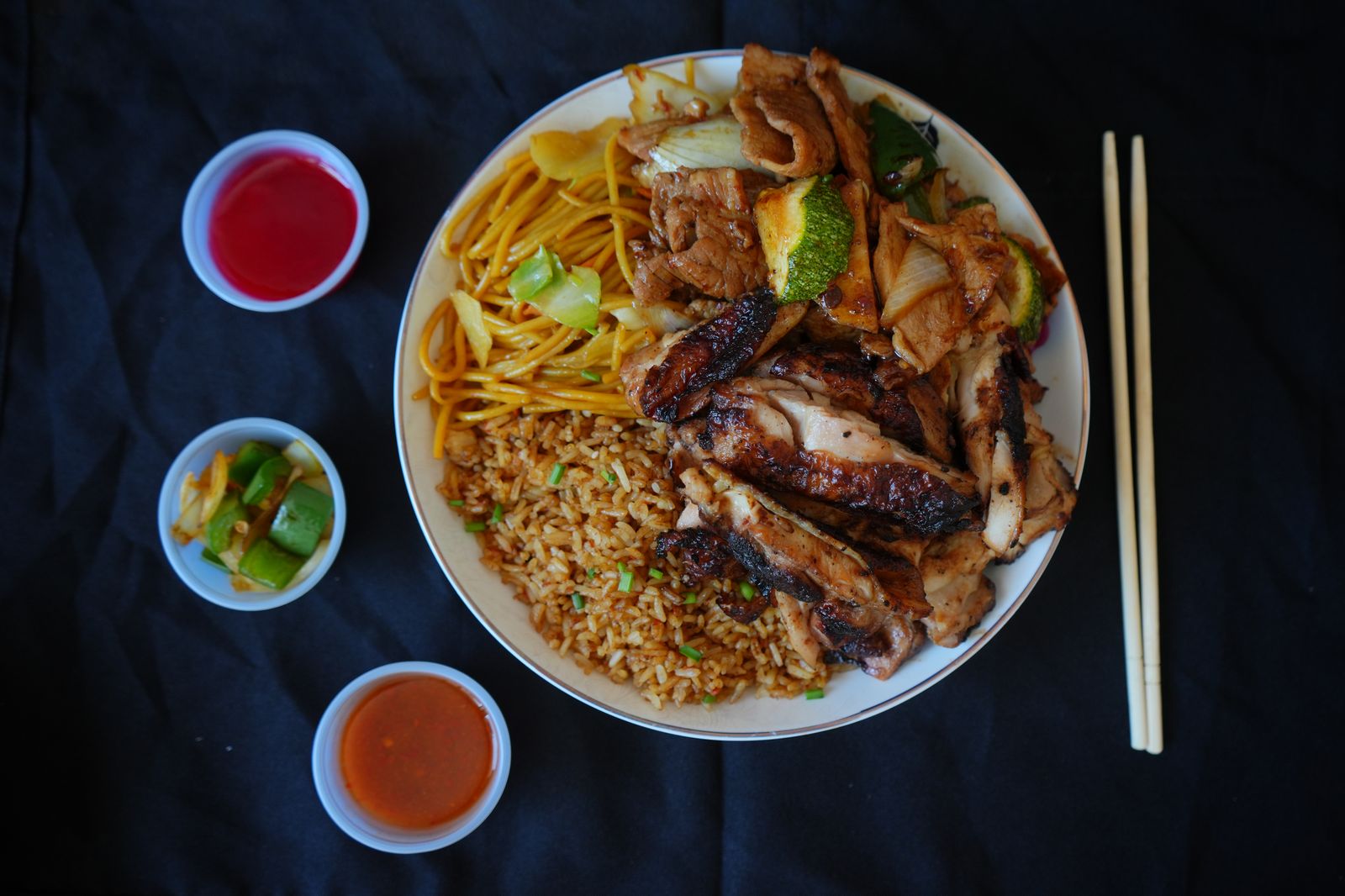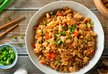Arroz salteado con vegetales y proteína (pollo y cerdo), al más puro estilo asiático.