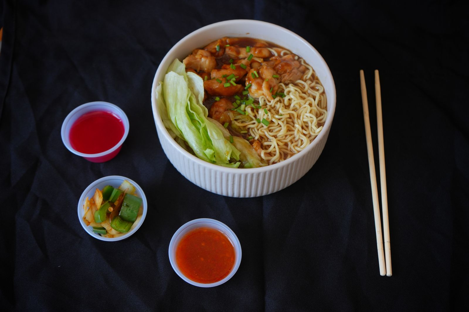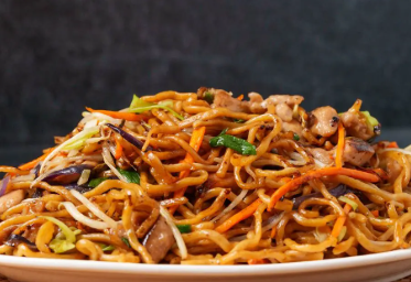 Pasta estilo chao mein con vegetales y salsa oriental perfectamente sazonada.