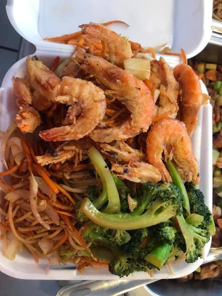 Camarón y 2 complemento (arroz y pasta).
