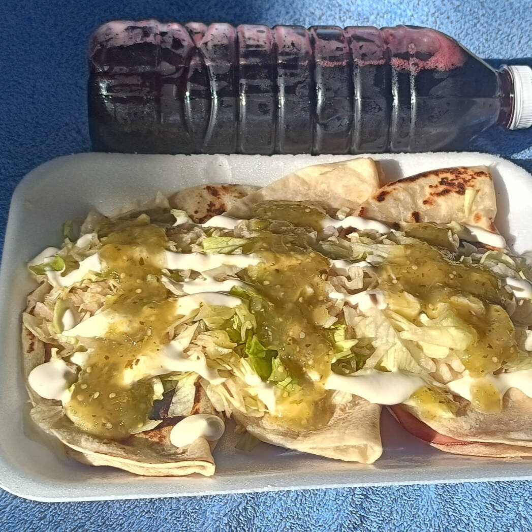 ORDEN DE 3 BURRITAS,CON AGUA DE JAMAICA NATURAL