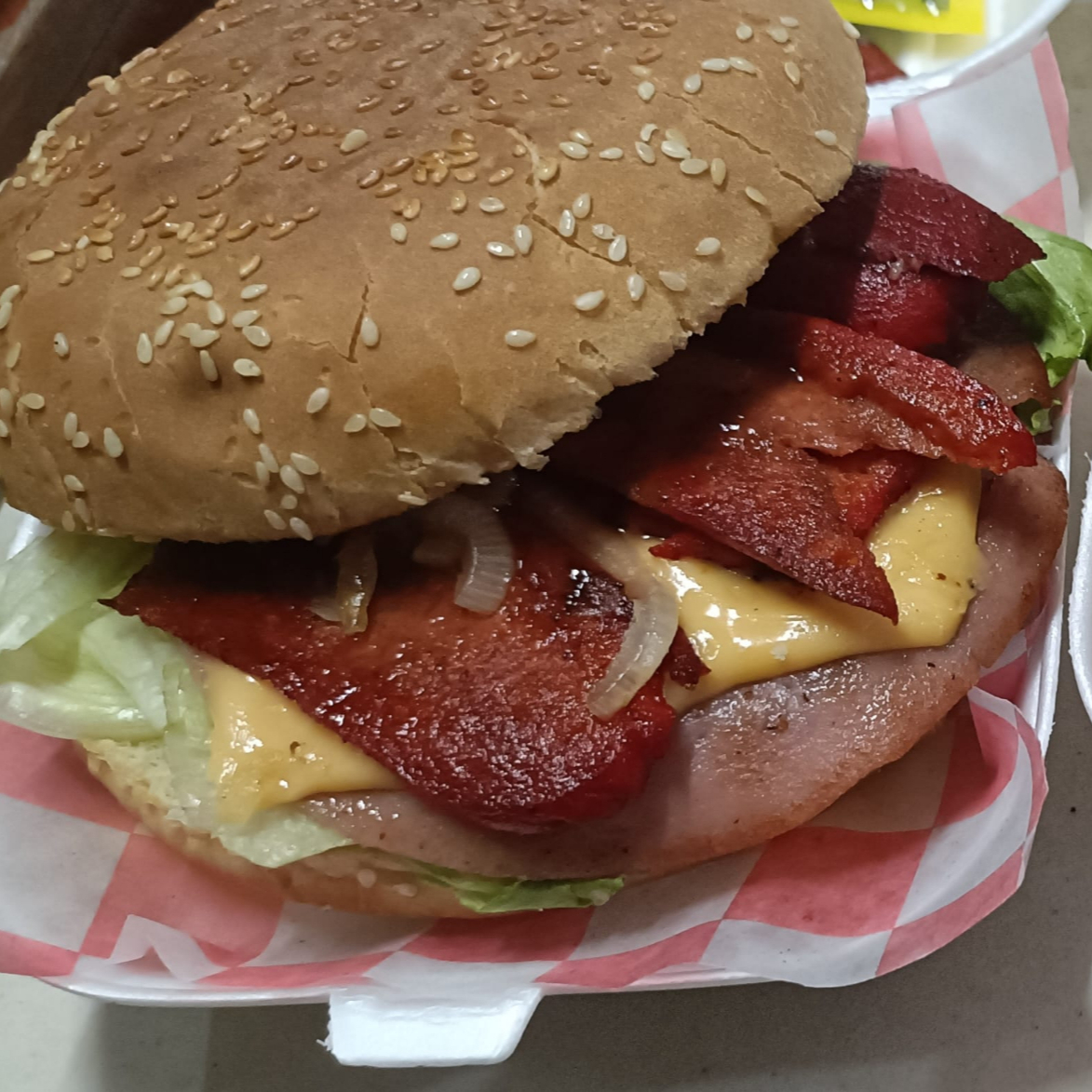 slachicha,tocino,queso tipo americano,queso derretido,cebolla y derezos