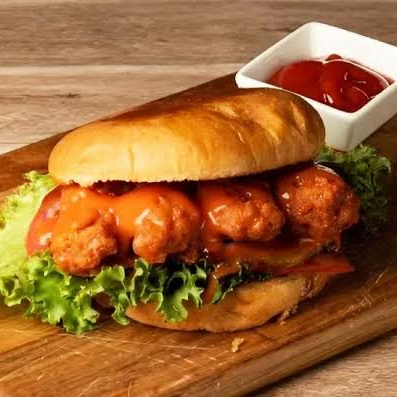 Hamburguesa boneless mango habanero, incluye lechuga , tomate , cebolla y 4-5 boneless , PAN BRIOCHE ,jamón , queso manchego con aderezo aparte , catsup , ranch ,mostaza y una porción de papa a la francesa.