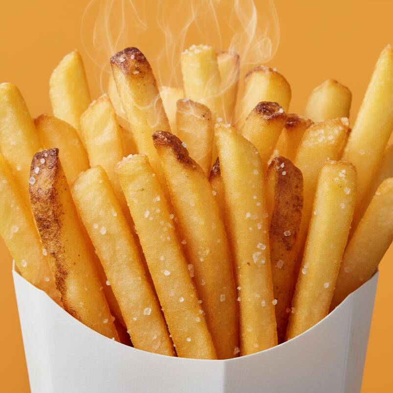 Papas delgadas y doradas, crujientes por fuera y suaves por dentro, servidas recién salidas de la freidora. El acompañante clásico que nunca falla con tus burgers, tenders o boneless.