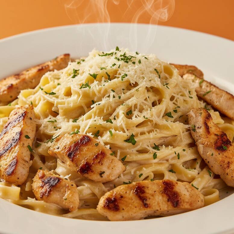 Fettuccine en salsa Alfredo cremosa, preparada al momento, con pollo a tu elección y un toque de queso que se funde en cada bocado. Un plato cálido y clásico, como comer en casa pero con sabor de cocina profesional.