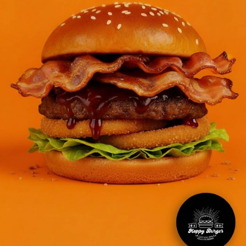 Carne envuelta en salsa BBQ, tocino chisporroteante y aros de cebolla crujientes que explotan al morder. El clásico americano que nunca pasa de moda.