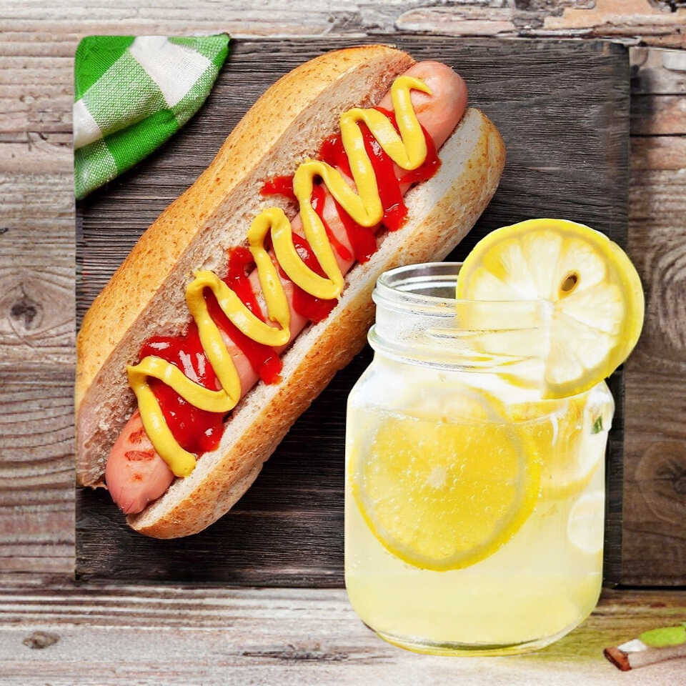 Hot dog con salchicha jumbo y los ingredientes de tu elección.