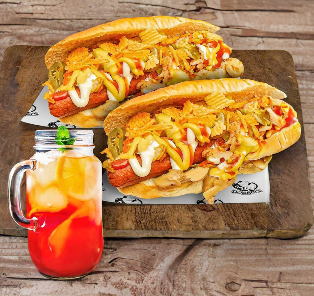 2 Hot Dog con Salchicha de Pavo, 1 Te de litro e ingredientes a elegir.