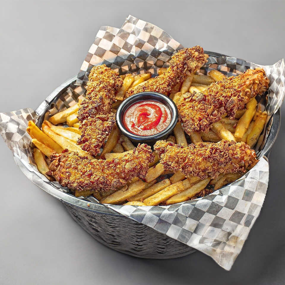 Orden de 5 tiras de pollo empanizado con porción de papas a la francesa.