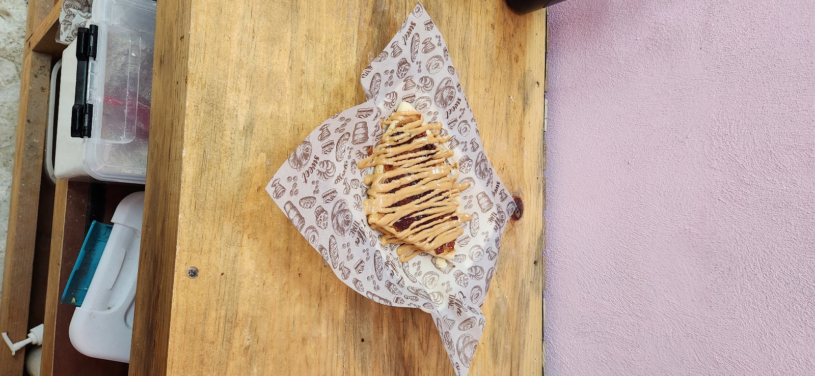 Clasica mezcla de crema de mani y mermelada de fresa.