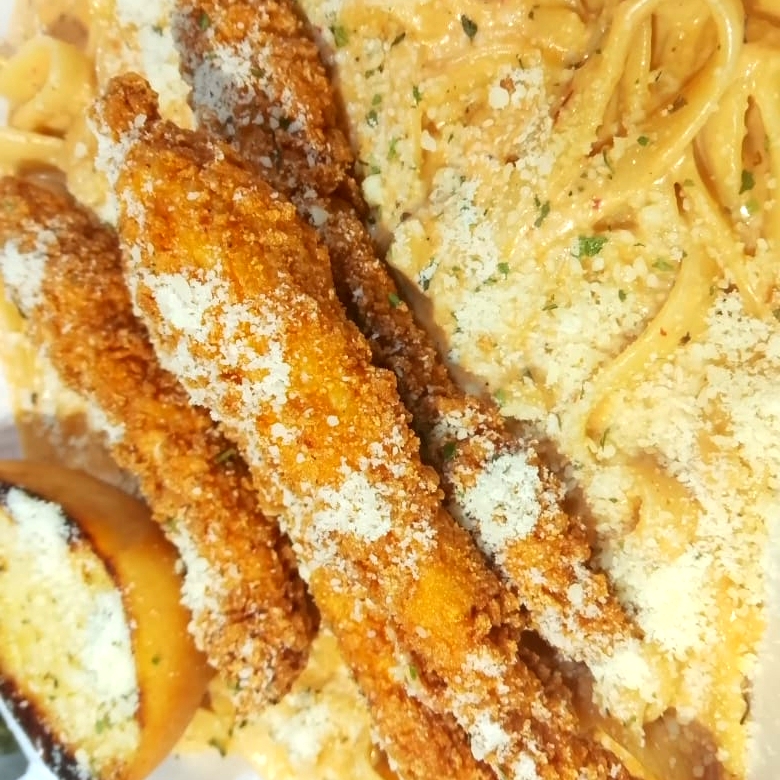 270g de deliciosa pasta acompañado de 4 tiras y un pan con ajo