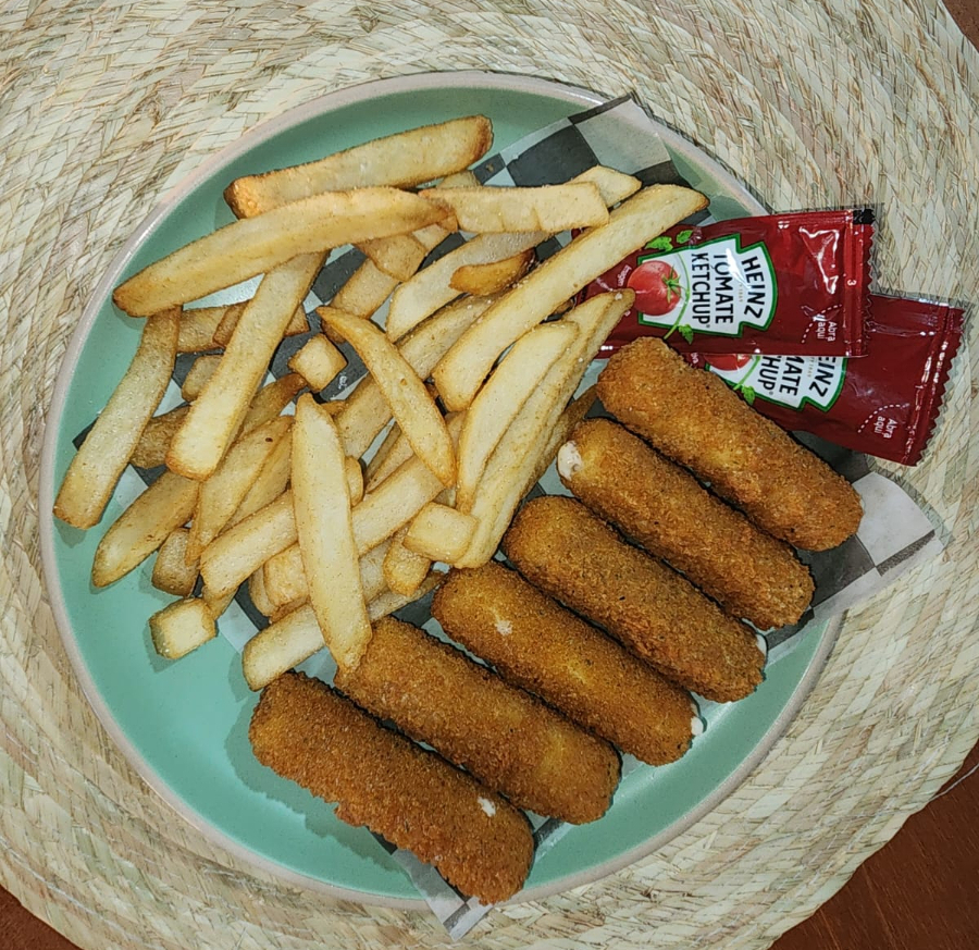 Crujientes papas fritas de corte tradicional, sazonadas con sal.