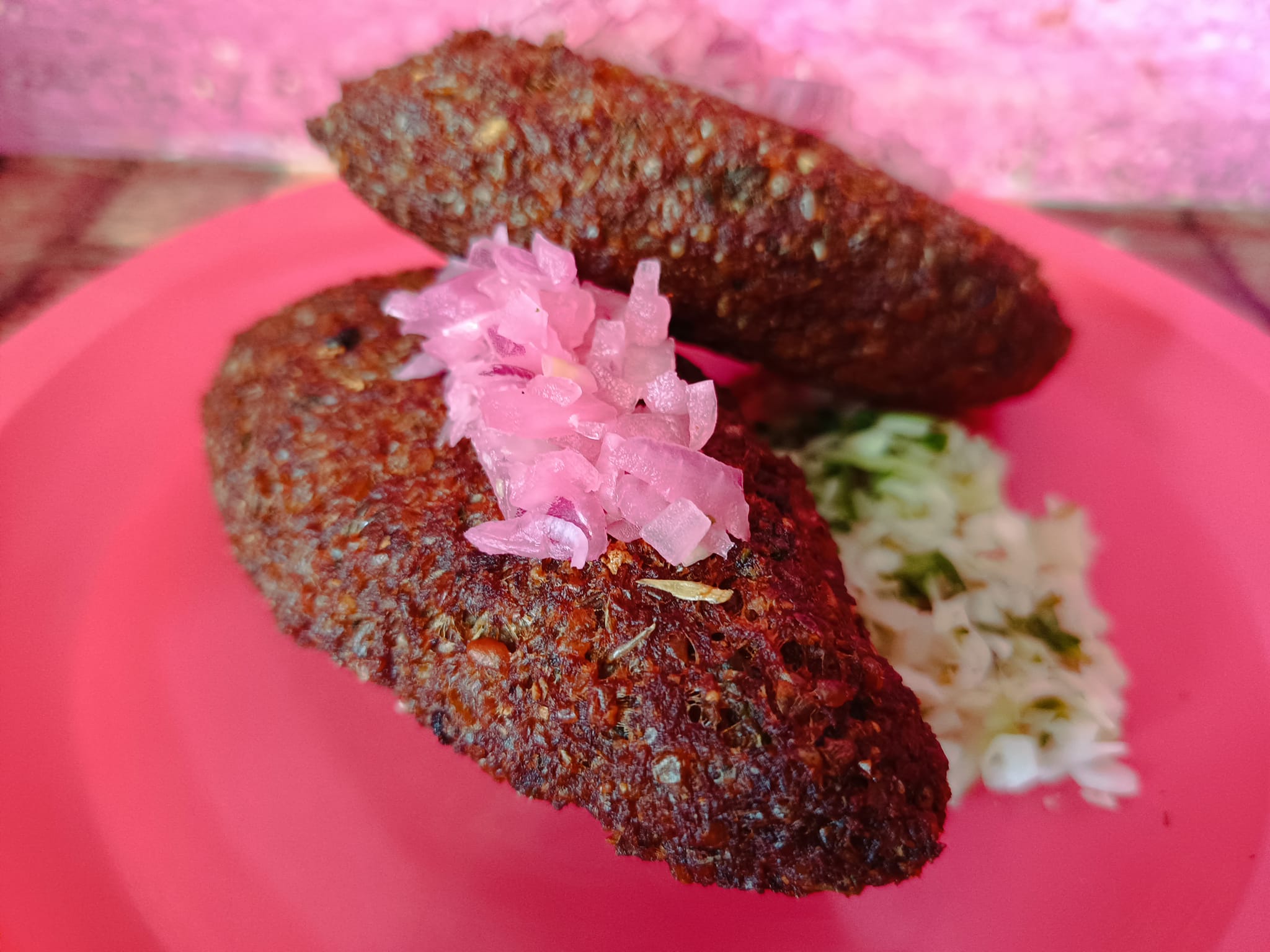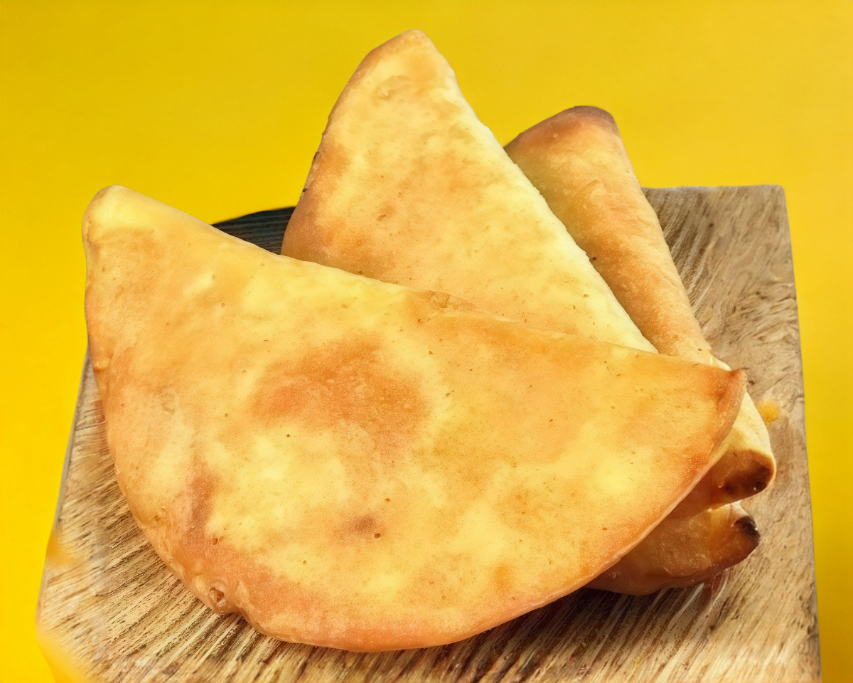 Fritura elaborada de carne de res y trigo, rellena de ingredientes, se acompaña de repollo y cebolla curtida.