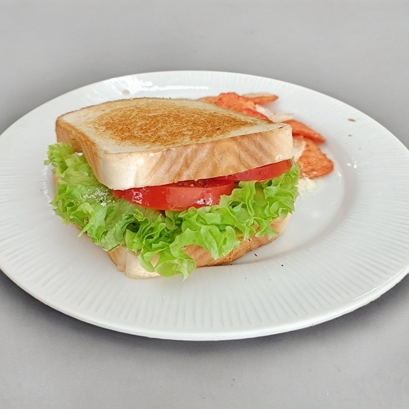 Sándwich de jamón, con lechuga, tomate, queso monterrey jack y un toque de mayonesa.