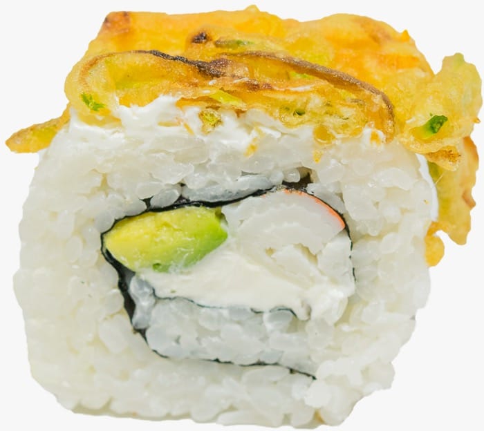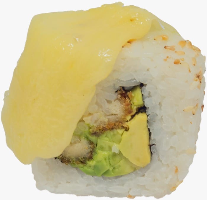 PF- rollo capeado con pollo PD- queso manchego, philadelphia y aguacate