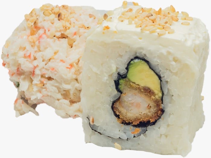 PF- arroz y ajonjoli PD- aguacate, pepino, philadelphia y camaron