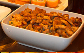 PF- arroz ajonjoli y queso gratinado encima PD- pollo empanizado y aguacate