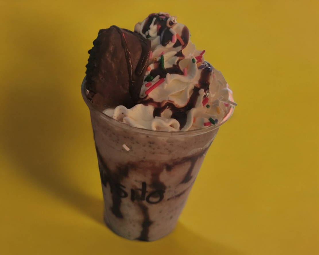 Frappe a base de leche deslactosada cremoso con galleta mamut y chocolate.