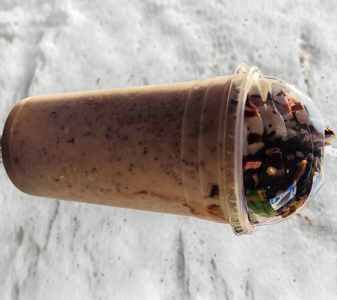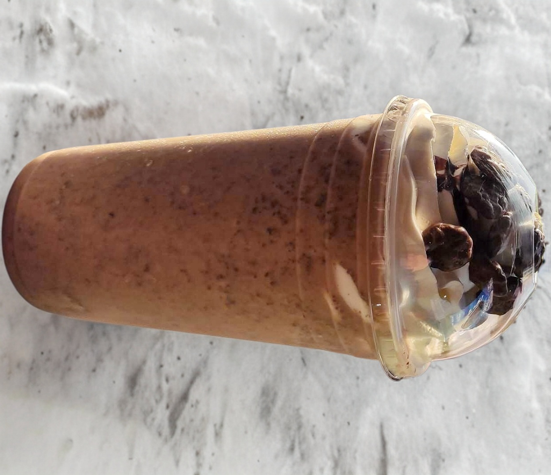 Frappe a base de leche deslactosada cremoso con galleta mamut y chocolate.